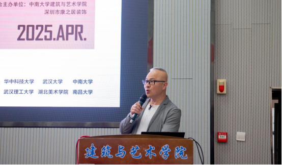 中国建筑学会室内设计分会名誉副理事长倪阳致辞,他表示作为行业内资深人员,在往届活动中感受到学子的成长,每次交流和评审都会有很多收益,并了解到各学科的发展前沿。
