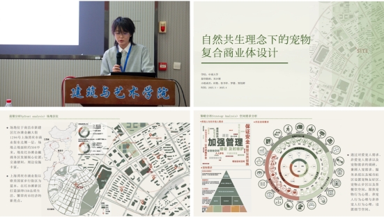 的两组同学分别进行了《豫章文化背景下生活集合店商业空间设计》和《自然共生理念下的宠物复合商业体设计》的主题汇报,得到了专家的高度赞赏和认可。