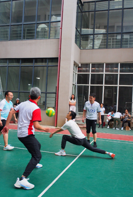 教职工的团结与拼搏。他们在比赛中相互鼓励,团结协作的积极态度和拼搏精神,为在场观看的学生们树立了良好的榜样。