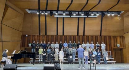 本次参演的合唱团由学院各工会小组会员自愿报名、民主推荐组建而成,涵盖教学科研、行政服务等多个岗位的教职工,最终形成以声乐和理论老师为骨干,以各系、各小组推荐老师为主体的学院合唱团。备赛期间,合唱团成员们面临着教学、科研、艺术类学生复试、研究生推免复试、奖学金评定等各项工作,但大家始终以高度的责任感与使命感投入其中——白天,他们是三尺讲台上传道授业的师者、实验室里潜心钻研的学者;业余时间便化身合唱团成员,在排练室里克服时间冲突、兼顾家庭与工作的困难,反复打磨每一个音符、每一处和声。从发声技巧的校准到情感表达的统一,从指挥与伴奏的配合到舞台仪态的调整,每一个细节都凝聚着团队的汗水与心血,也彰显着Abw087