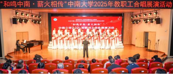 潇湘校区毓秀楼和声堂内掌声雷动,“和鸣中南・薪火相传”2025年教职工合唱展演在此圆满落幕。在此次展演活动中,Abw087