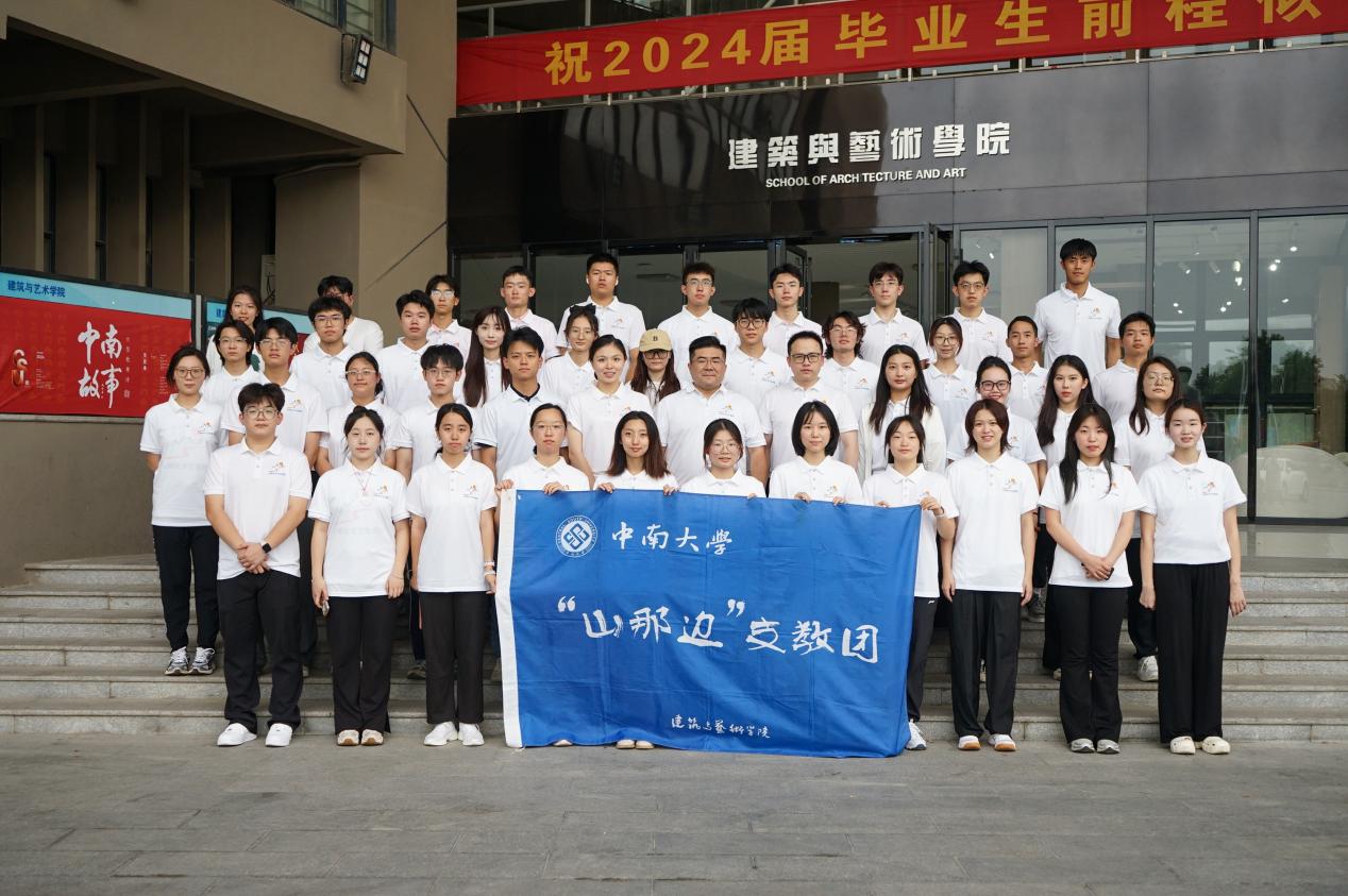 山那边文艺支教团赴江华支教出征仪式在艺术楼四家顺利举行。学院党委副书记陈乐凯、支教团指导老师韩家宝、冯莲及2024年山那边支教团全体成员参加出征仪式。