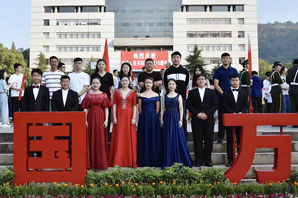 学子李利民、张维斯、孟乡、曹殷姿、陆思童、张镓铄、吴赛、张逸帆深情地演唱了一首令人心生自豪的歌——《我和我的祖国》, 随后又演唱了《共筑中国梦》,唱出了对祖国母亲的热爱。