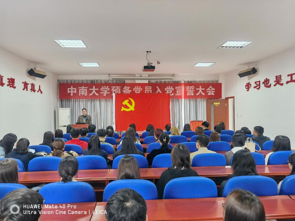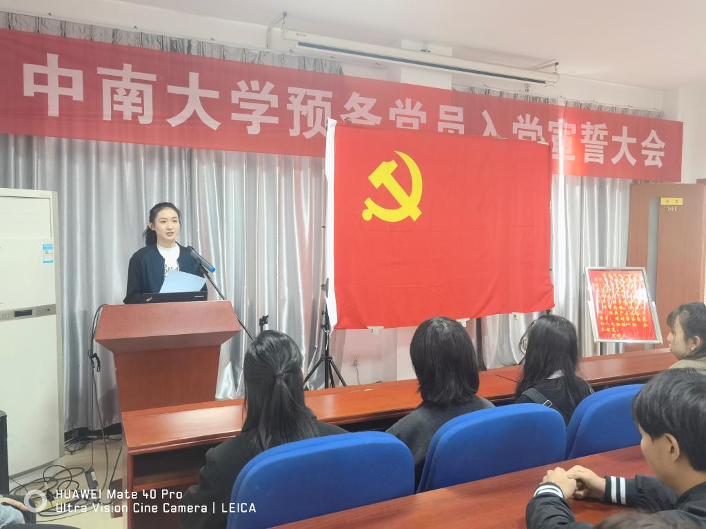 宣誓仪式在雄壮的国歌声中拉开帷幕。陈乐凯老师向参加宣誓仪式的党员讲述了入党宣誓仪式的特殊意义并宣读参加此次宣誓的党员名单。接着,在院分党校班导师李萌萌老师带领下,全体预备党员在党旗前庄严宣誓。