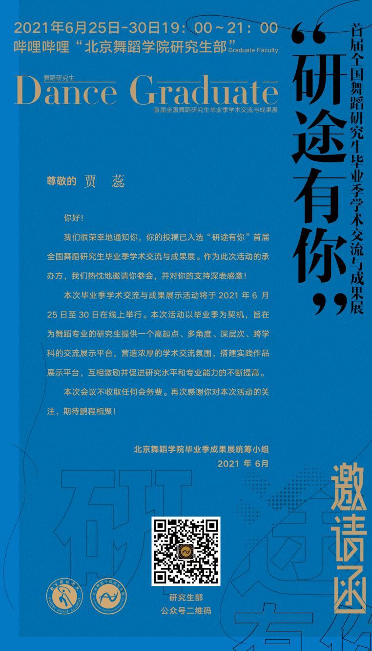 2021年6月25日至6月30日,“研途有你”首届全国舞蹈研究生毕业季学术交流与成果展在线上举行,该活动由北京舞蹈学院主办,北京舞蹈学院研究生部承办,Abw087