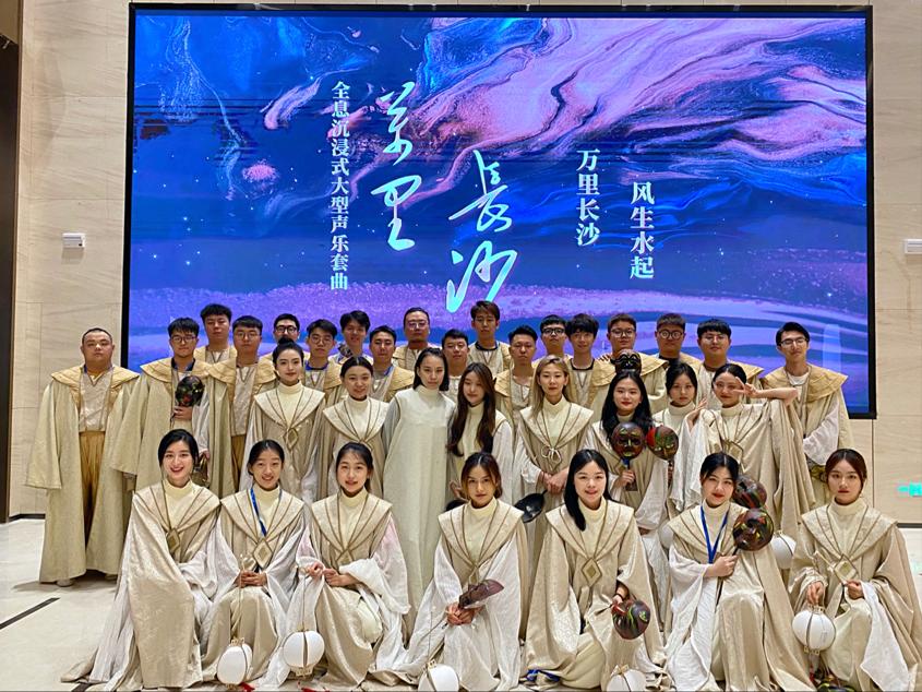 音乐表演2018级全体同学参演的全息沉浸式大型声乐套曲《万里长沙》在长沙马栏山视频文创园首演圆满结束。Abw087
