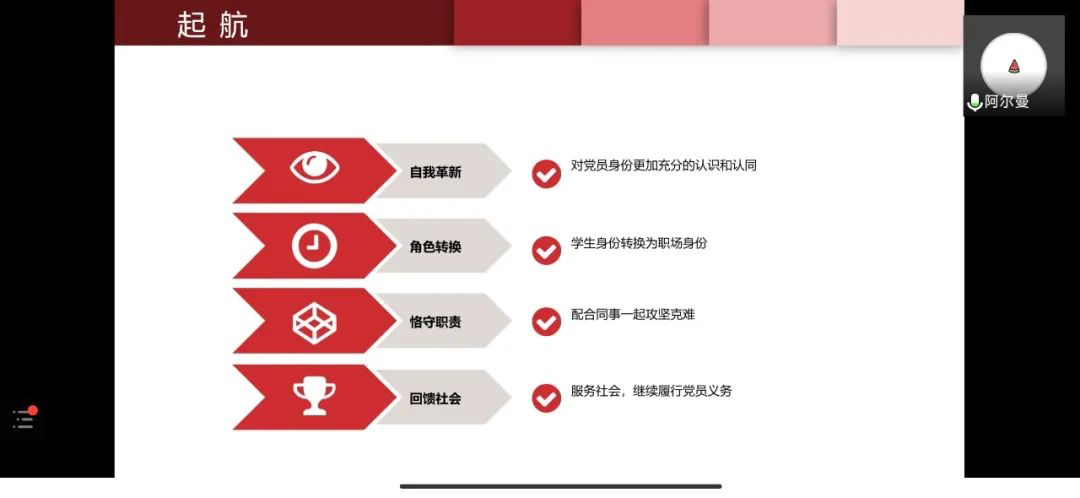 “立足新时代新征程,中国青年的奋斗目标和前行方向归结到一点,就是坚定不移听党话、跟党走,努力成长为堪当民族复兴重任的时代新人。”本次分享交流会通过五位青年校友主题分享,让Abw087