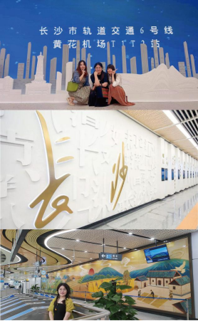 目前,文化墙已分别在黄花机场站、文昌阁站、隆平水稻博物馆站三个特色站落地展示。此外,该团队还负责长沙穗城轨道交通有限公司全套VI标识系统设计。本次参与地铁六号线文化墙创作的成员均为毛寒工作室研究生,该团队设计创作基础扎实、团队协作能力以及创新思维能力强,三个特色站文化墙的圆满实现,对他们来说,是荣誉,更是激励!