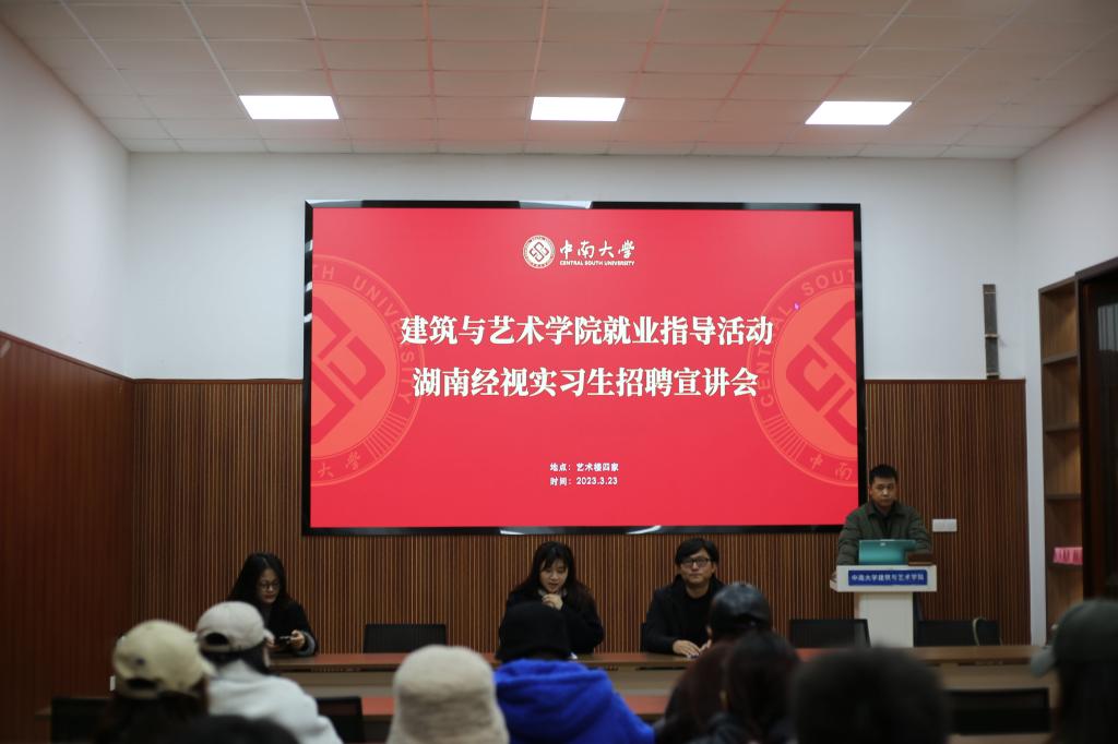 就业指导活动,湖南经视实习生招聘宣讲会于艺术楼四家活动室顺利举办。本次活动由湖南经视传媒有限公司(频道)人力资源部陈翼,湖南省舞台美术协会副会长何熊主讲,Abw087