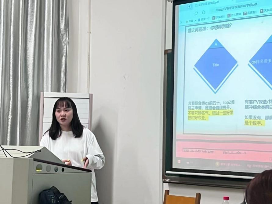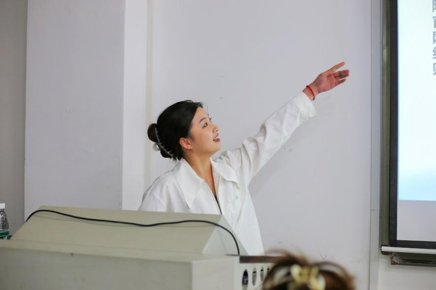 留学方面,环境设计的徐璟瑶首先分享了在择校上的经验,随后指出英语口语的重要性,并介绍了留学前的注意事项,鼓励同学们选择自己喜欢的学校。建筑专业的邓雯倩从择校、语言、作品集等多个角度出发,分享了优秀的自学平台网站,阐述了留学的相关注意事项,指出良好的心态在学习的过程中的重要性。