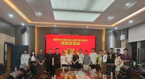 感恩活动首先以职业生涯经验交流会拉开序幕。5月19日晚上19:00-23:00,在创业南楼208,由邢召强、苏腾飞、刘雄、李飞、郝佳、龚薇、洪旭华等七位学长代表全体98级,以线下、线上结合的方式,与在校的学弟学妹们座谈交流了职业生涯经验,为学弟学妹们的未来发展提出了建议。建筑学专业李哲、柳思勉、黄杏玲、赵明桥、许砚梅、董天、王宇等老师共同参与了经验交流会。