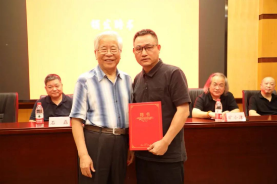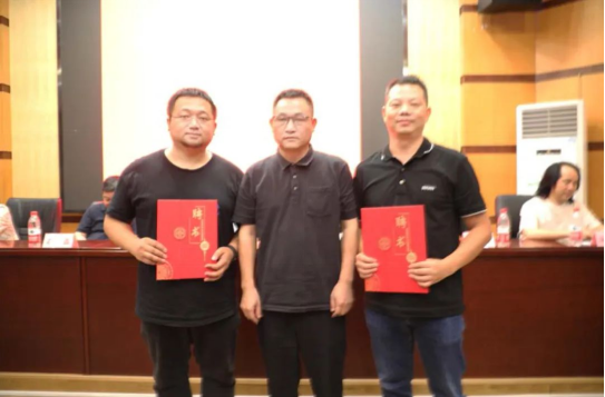 新当选的湖南省美术家协会水彩画艺术委员会主任唐晓明为新当选的湖南省美术家协会水彩画艺术委员会秘书长石明祥和副秘书长李明、姚泽福颁发聘书