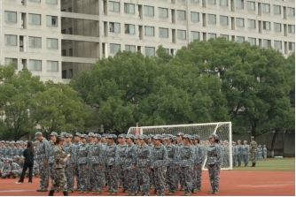 集合后的十五分钟军姿训练将同学们拉回紧张的训练状态,今天的主要训练内容是齐步走。各排长带领同学到训练场地后,先亲身示范了两遍齐步走的动作。而后开始正式教学,排长将动作分为上身动作与下身动作分开教学训练。