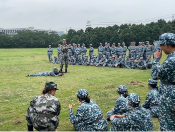 下午的主要训练内容为射击打靶。在连长的带领下,同学们来到新校区草场训练场,以四个排为一单位围成方形,集中学习射击动作,射击分为站姿,蹲姿,卧姿。同学们练习的是卧姿射击,在连长细致的教学下,同学们学会了卧地的正确流程以及持枪动作,并轮流实操了一番。