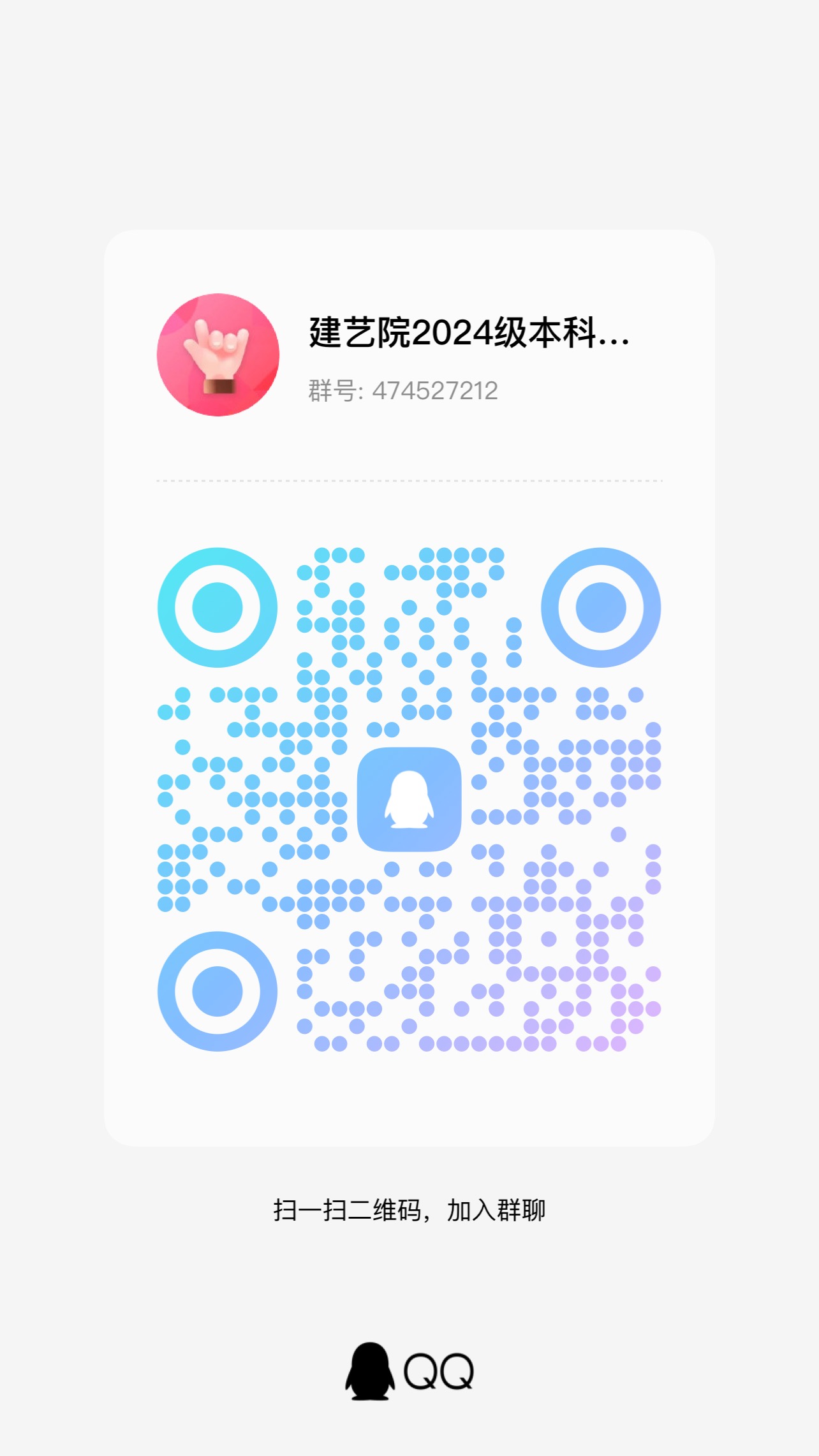 4. 为更好的给新同学答疑解惑,我们组建了2024级本科新生QQ群,请同学们扫描下方二维码申请入群,我们会根据招生办提供的录取名册进行身份核验。进群后将群昵称修改为:专业班级-省份简称-姓名,范例:艺术(音表、舞表、建规)2201-湘-张三。
